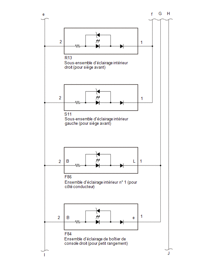 | NG (l'ensemble d'éclairage intérieur n° 2 (pour côté passager avant) ne s'allume pas) |