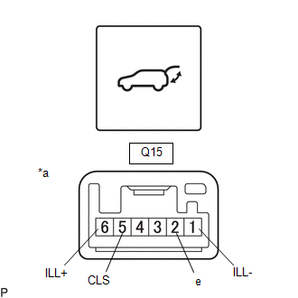 Borne positive (+) de la batterie auxiliaire → Q15-6 (ILL+) Borne négative (-) de la batterie auxiliaire → Q15-1 (ILL-) |