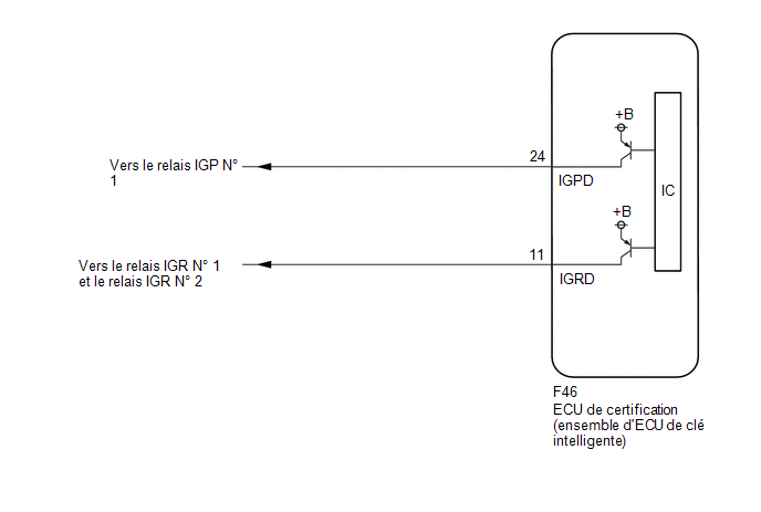Ce DTC est enregistré lorsqu'un dysfonctionnement du circuit IG ou du circuit de maintien IG de l'ECU de certification (ensemble ECU de clé intelligente) est détecté.