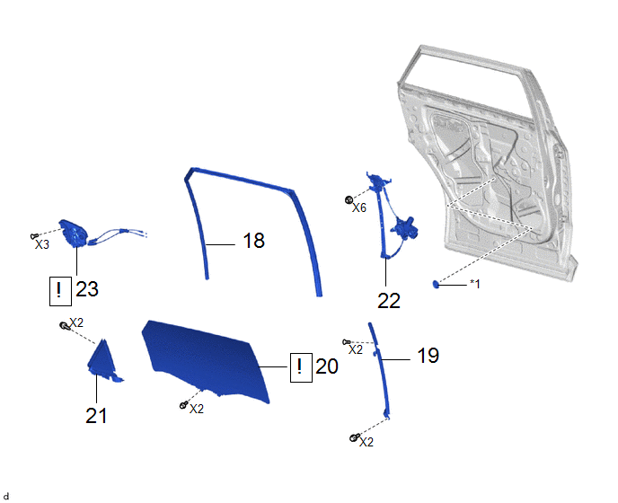 (10) Déposer le sous-ensemble de vitre de porte arrière comme indiqué sur le schéma.
