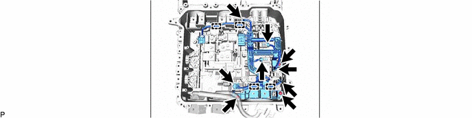 (1) Retirer à la main toute trace de produit d'étanchéité dépassant du côté intérieur et du côté extérieur du sous-ensemble d'unité de convertisseur électrique supérieur et du sous-ensemble d'unité de convertisseur électrique inférieur.
