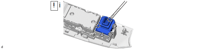 (1) A l'aide d'un tournevis dont la pointe a été préalablement enveloppée de ruban adhésif de protection, libérer les griffes pour déposer l'ensemble de contacteur de rétroviseur extérieur.