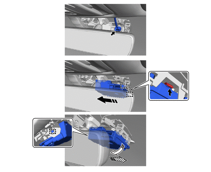 REMARQUE: Pour éviter d'endommager les guides, toujours faire coulisser le cache de reconnaissance de marche avant n° 1 parallèlement à la vitre de pare-brise. |