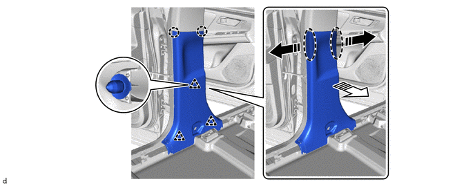 (4) Déposer les 2 agrafes de garnissage de montant avant de l'ensemble de garnissage de montant avant gauche.