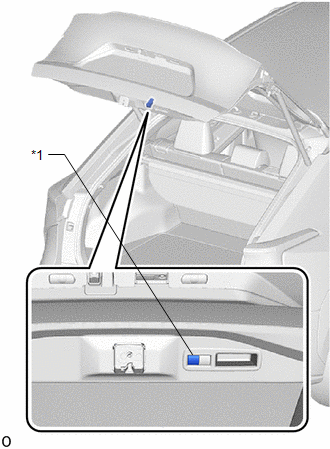 (b) Tout en étant muni du sous-ensemble d'émetteur de clé électronique, enfoncer deux fois le contacteur de commande de porte de coffre électrique et s'assurer que la porte de coffre se ferme automatiquement, puis se verrouille. CONSEIL: Si le contacteur de commande de porte de coffre électrique est enfoncé par la main qui porte également le sous-ensemble d'émetteur de clé électronique, ce dernier peut ne pas être détecté comme se trouvant dans la zone de détection extérieure, et la fonction de fermeture et de verrouillage de porte de coffre électrique peut ne pas fonctionner. |