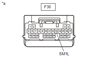 | (a) Débrancher le connecteur de sous-ensemble de commande de chauffage de siège gauche. |