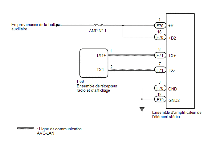 (a) Débrancher le connecteur F70 de l'ensemble d'amplificateur de l'élément stéréo.