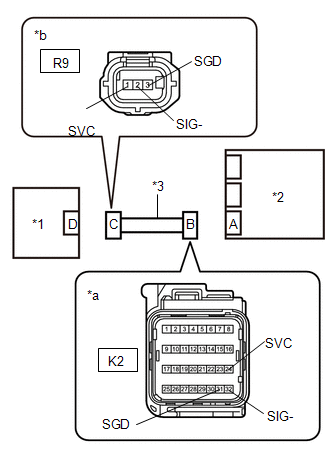 (a) Débrancher les connecteurs de l'ensemble d'ECU d'airbag, du capteur de classification d'occupant avant gauche et du capteur de classification d'occupant arrière gauche.