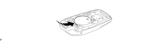 (1) Insérer un tournevis de précision dans la fente et déposer délicatement la pile de l'émetteur (pile au lithium: CR2450) comme indiqué sur le schéma.