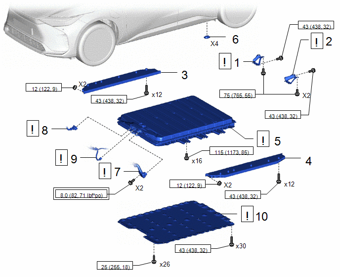 (1) Installer l'ensemble de la batterie de traction avec les 16 boulons.