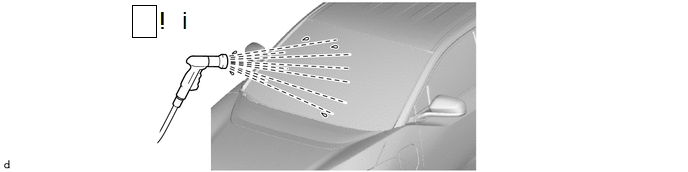1. Une fois que le produit adhésif a durci, appliquer de l'eau depuis l'extérieur du véhicule. Vérifier l'absence d'infiltrations d'eau à l'intérieur de l'habitacle.