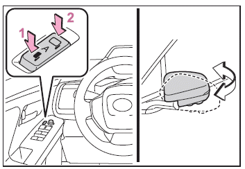Avec la position de sélection sur R, réglez l'orientation des rétroviseurs à votre convenance.