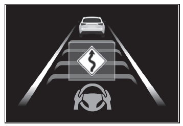 Lorsque le système détecte un virage, il entame une réduction de la vitesse du véhicule. À la sortie du virage, il met fin à la réduction de la vitesse du véhicule.