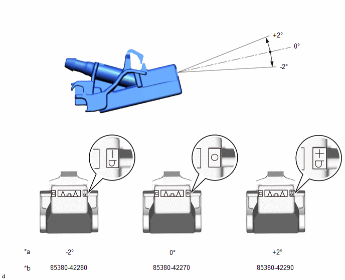 (a) Sélectionner un sous-ensemble de gicleur de lave-glace afin que l'endroit que le liquide de lave-glace touche sur le pare-brise soit conforme à la zone standard. Remplacer le sous-ensemble de gicleur de lave-glace par l'élément sélectionné.