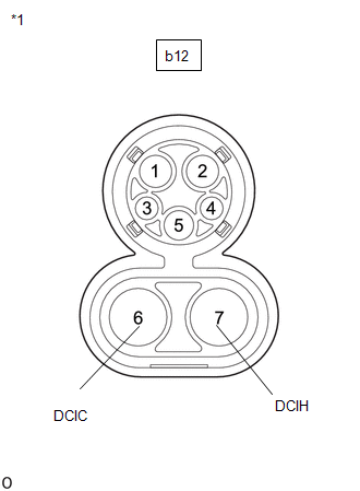 (b) Mesurer la résistance du câble d'entrée du chargeur DC (entrée de charge DC) (entre les bornes DCIH - DCIC) (1) Mesurer la résistance en fonction de la (des) valeur(s) indiquée(s) dans le tableau ci-dessous. REMARQUE: