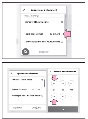 Programmez l'heure de début de la recharge, puis appuyez sur "OK".