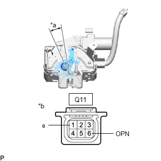| (a) Vérifier le fonctionnement du moteur de serrure de porte. (1) Amener la serrure de porte en position de verrouillage. (2) Appliquer la tension de la batterie auxiliaire sur le moteur de serrure de porte et vérifier le fonctionnement du moteur de serrure de porte. OK.: Cliquer sur Location & Routing(Q8) Cliquer sur Location & Routing(Q8) Cliquer sur Connector(Q8) Cliquer sur Connector(Q8)